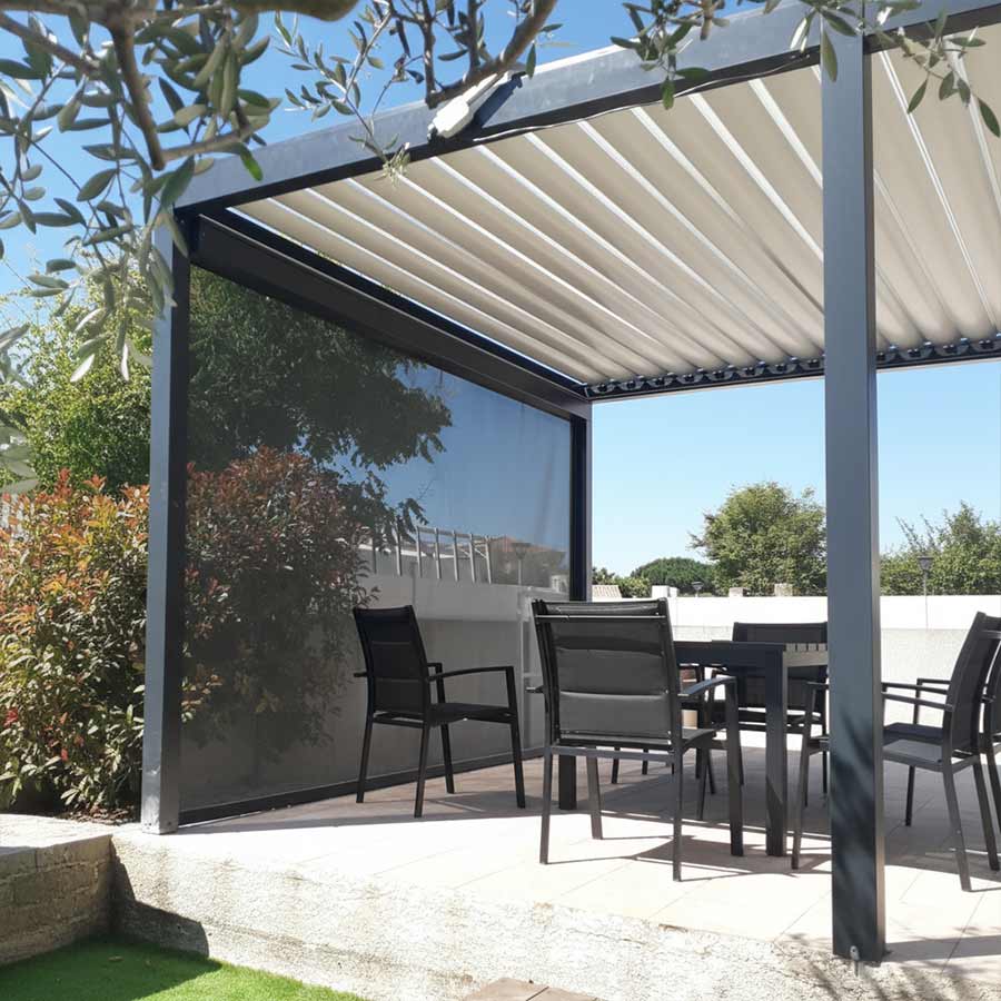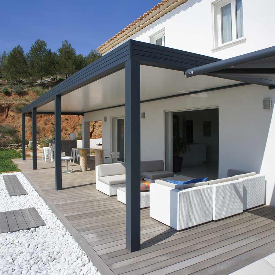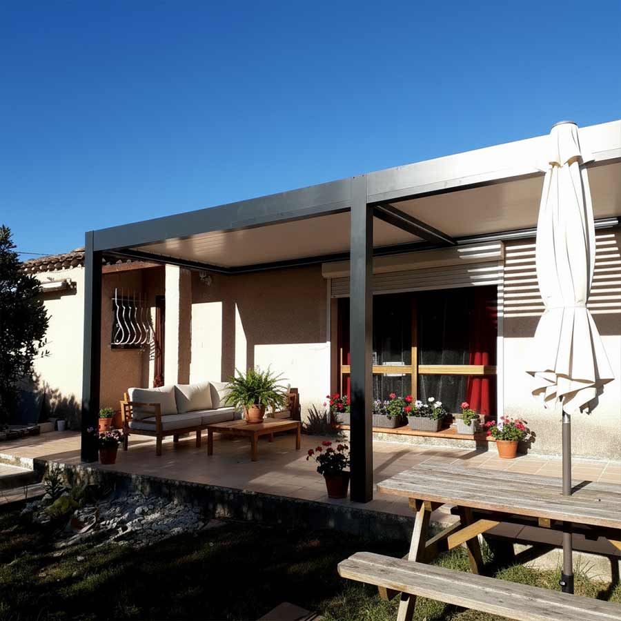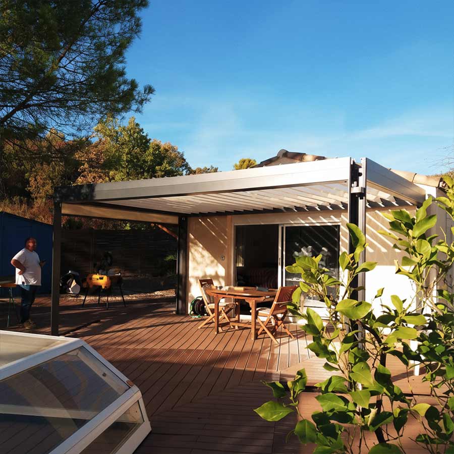 Des lames orientables permettent de moduler l’ensoleillement au fil de la journée et d’offrir une ventilation naturelle sur votre terrasse. Extrêmement résistante au vent, en toiture fermée, elle vous protège aussi des intempéries.
