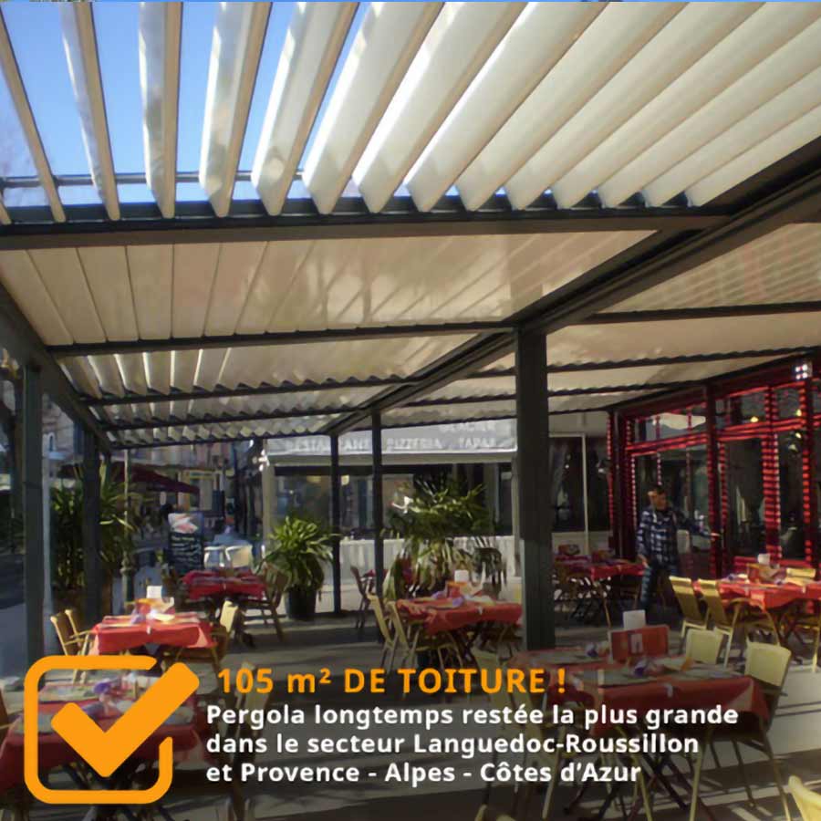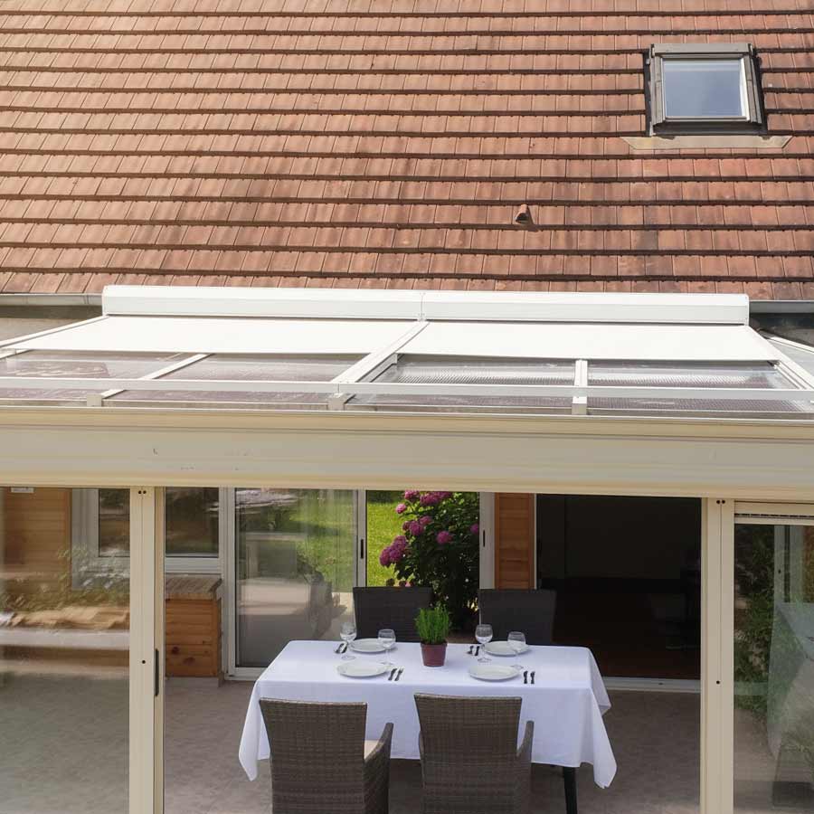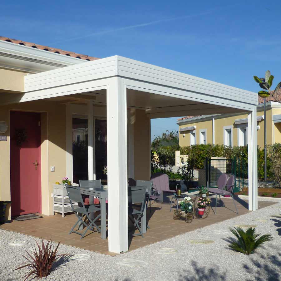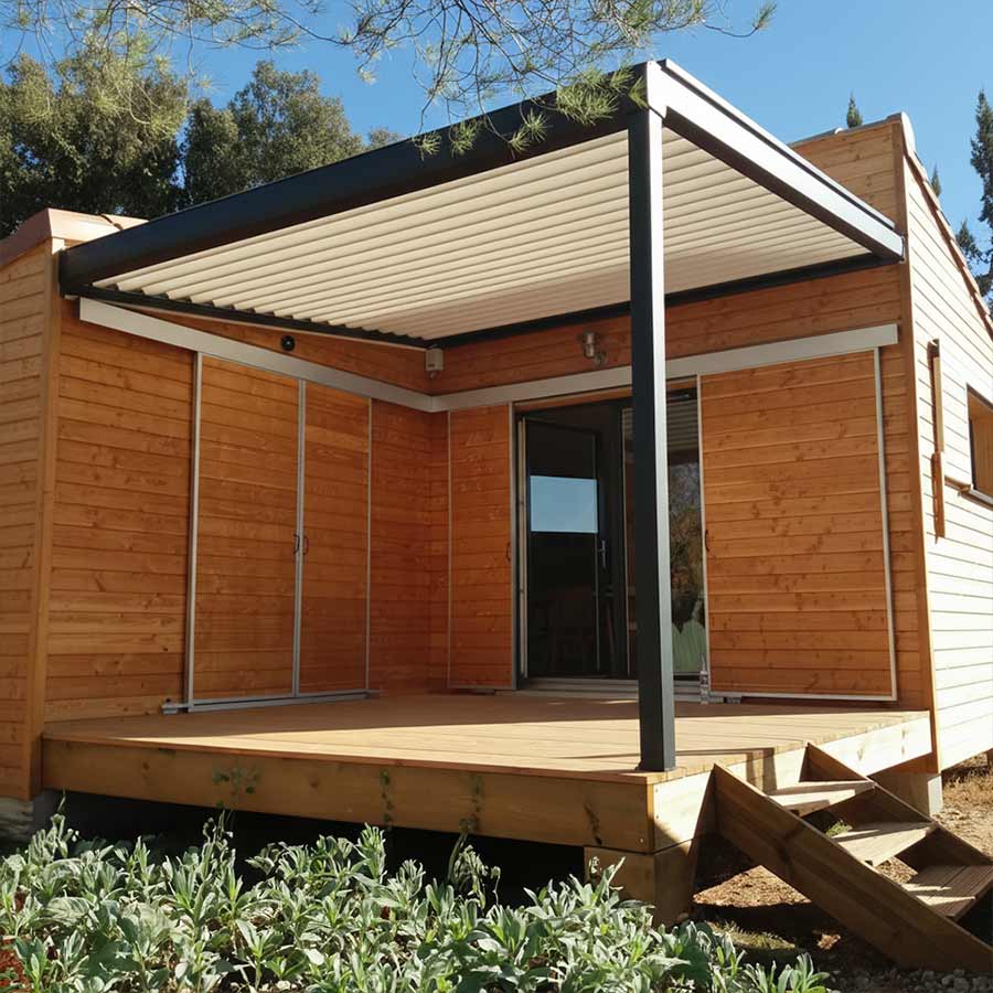 Des lames orientables permettent de moduler l’ensoleillement au fil de la journée et d’offrir une ventilation naturelle sur votre terrasse. Extrêmement résistante au vent, en toiture fermée, elle vous protège aussi des intempéries.